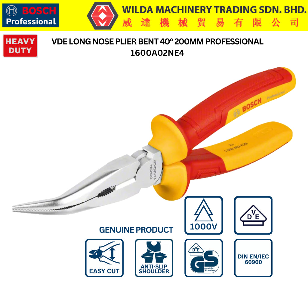 BOSCH VDE Long Nose Plier bent (40°) 200mm | 1600A02NE4 | WILDA MACHINERY