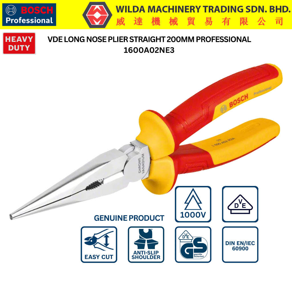 BOSCH VDE Long Nose Plier straight 200mm | 1600A02NE3 | WILDA MACHINERY