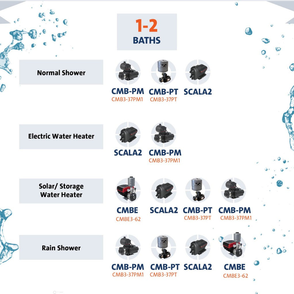 Boosting from tanks: Increases water pressure from roof tanks, break tanks and ground tanks, including rainwater tanks.