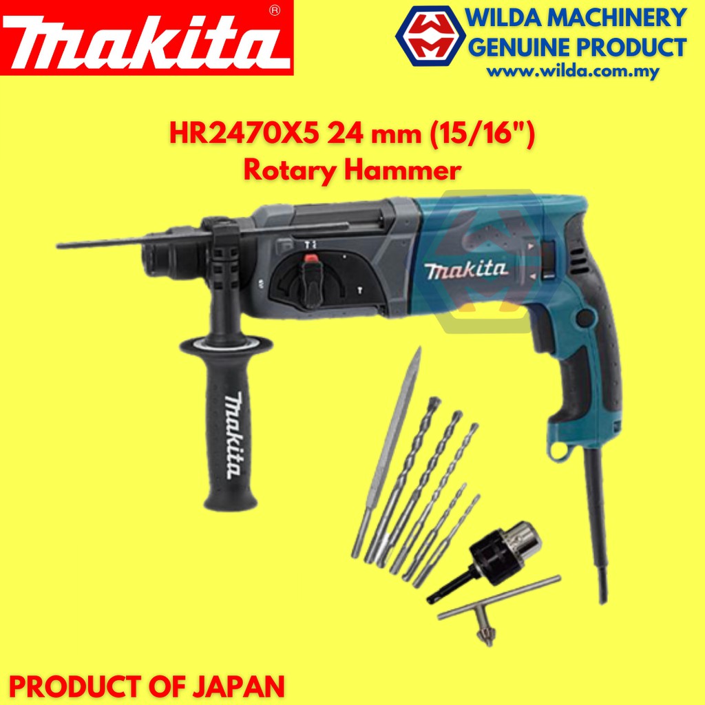 Makita HR2470x5 HR2470 Rotary Hammer 780W 24mm 3 Functions Hack Drill Impact Drill Free Accessories | WILDA MACHINERY