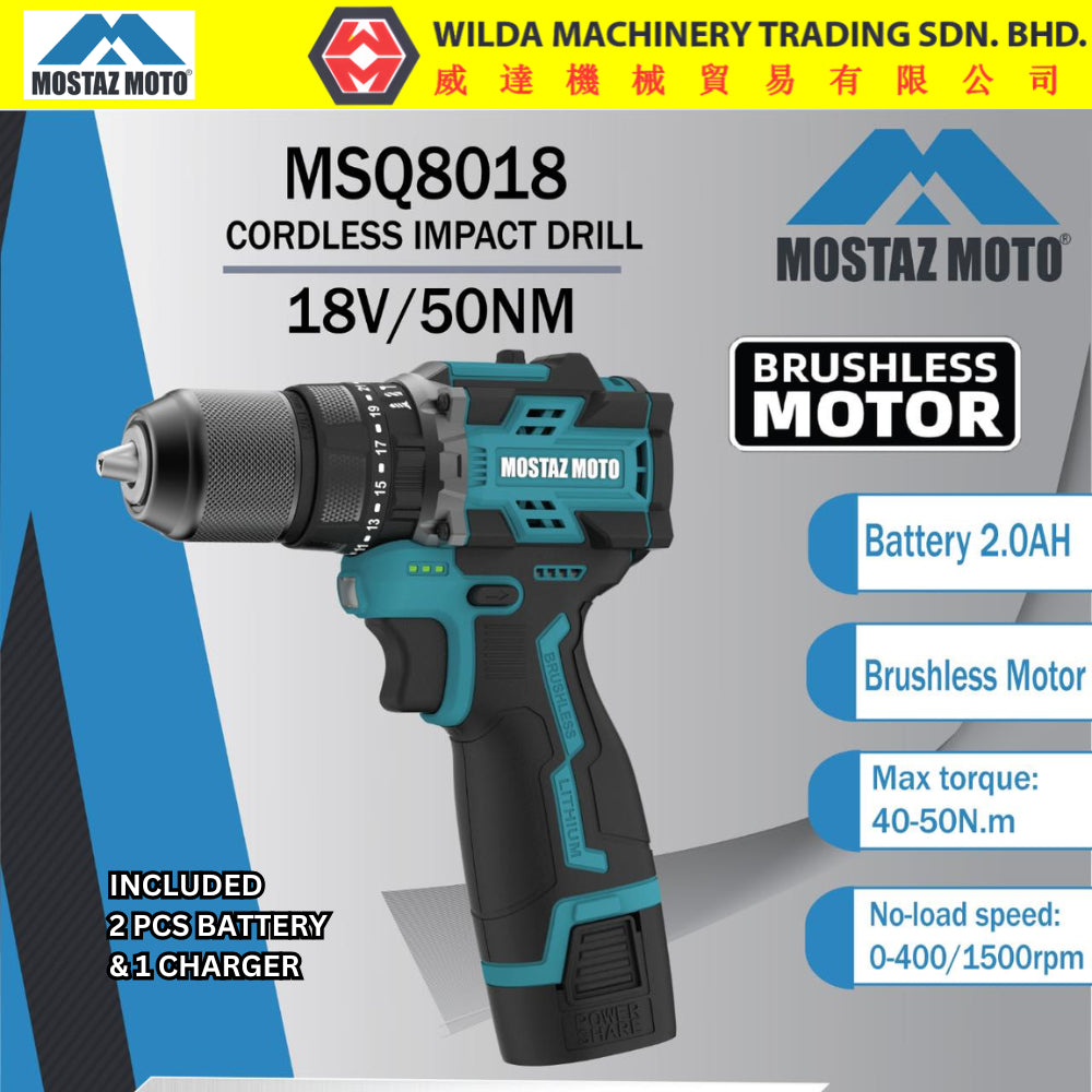 MOSTAZ MOTO MSQ8018 Brushless Cordless Impact Drill 18V 50Nm Steel Drill Chuck